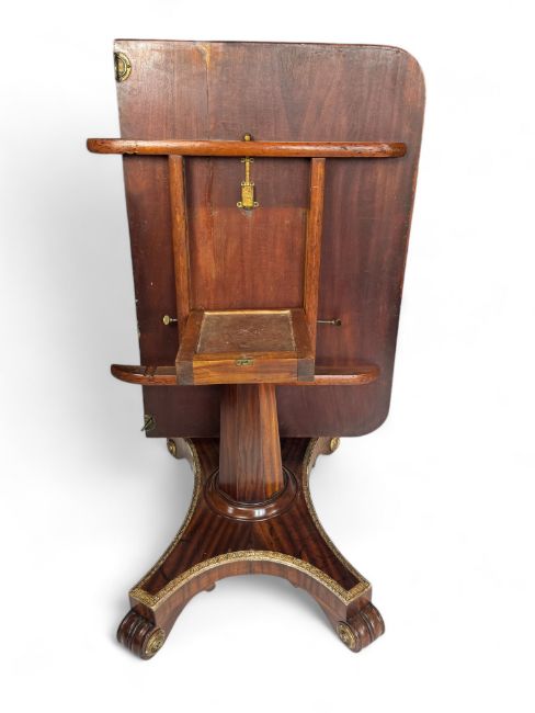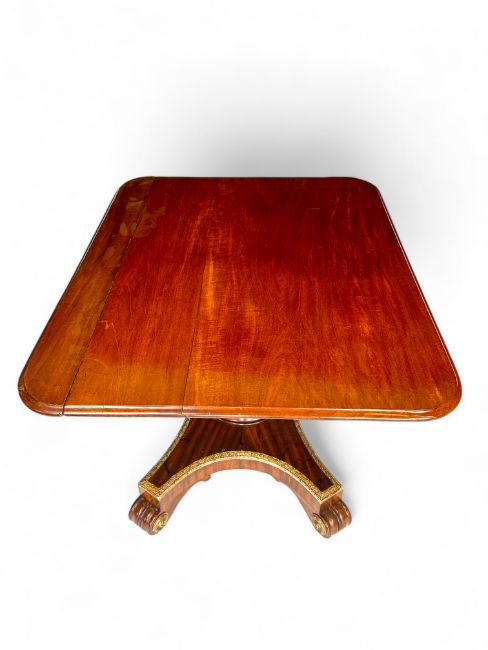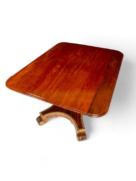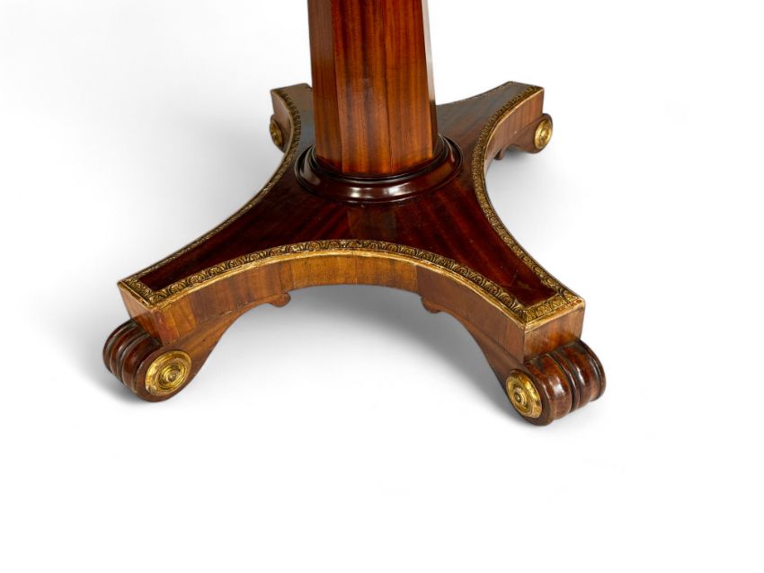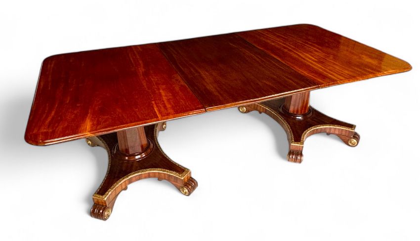 An unusual Regency twin pedestal mahogany and parcel gilt dining table