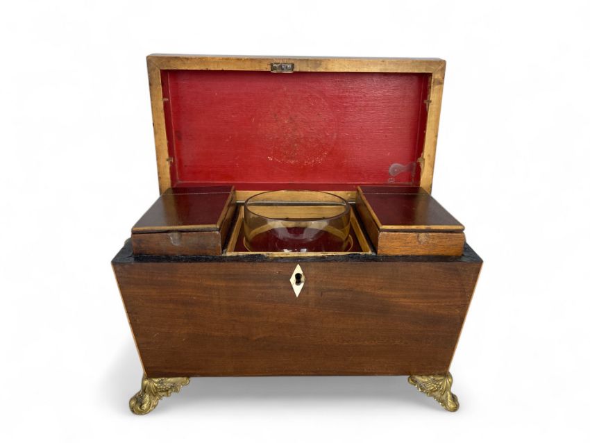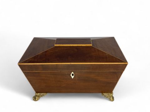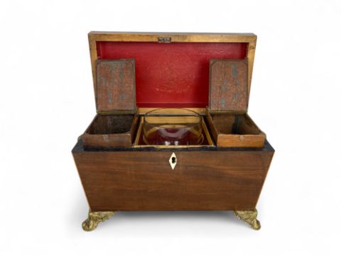 A Regency mahogany and satinwood inlaid tea caddy